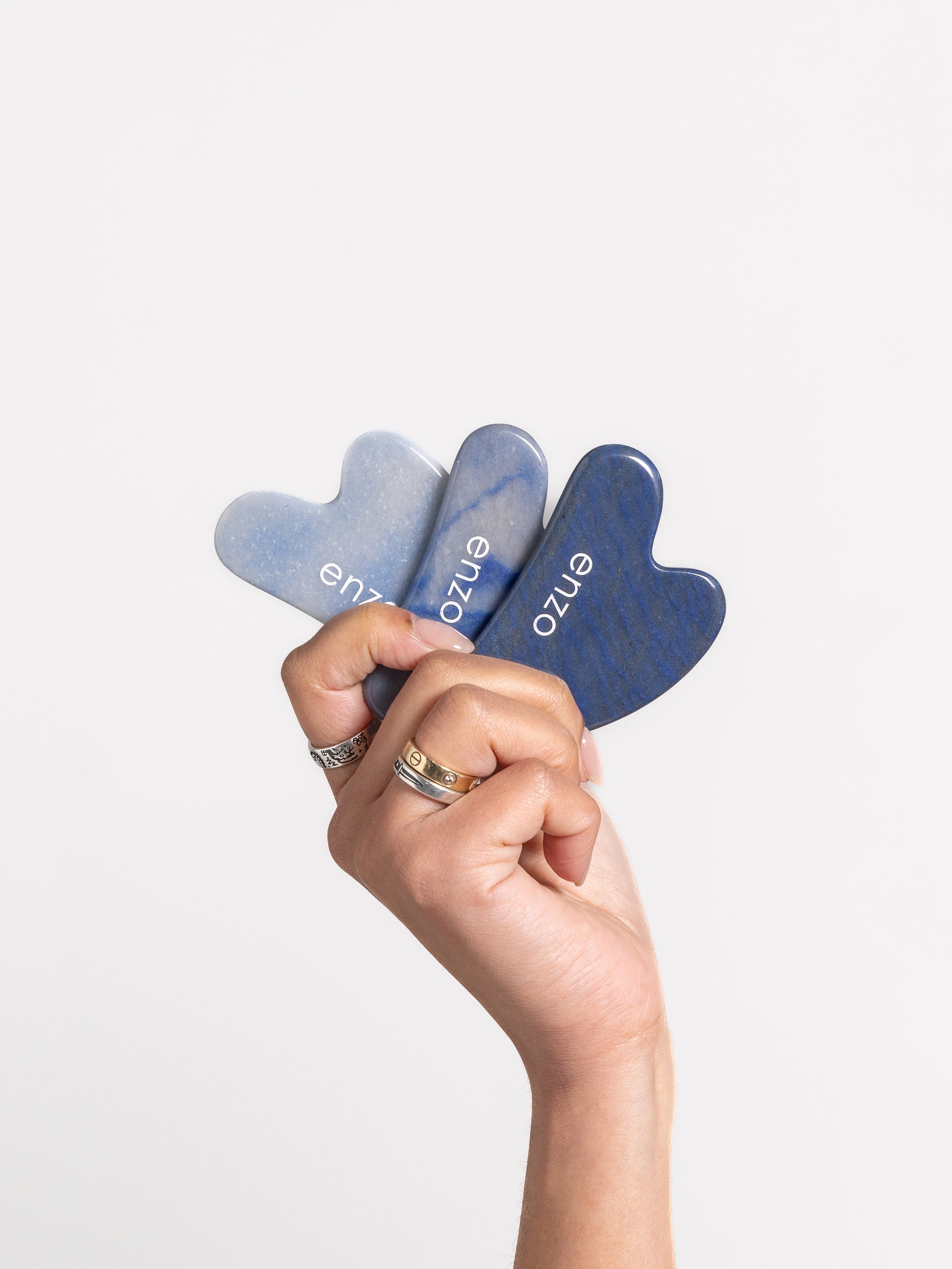 Start with clean skin. Apply a few drops of facial oil, serum, or the Enzo mist to create slip - this allows the gua sha to glide smoothly without pulling the skin.